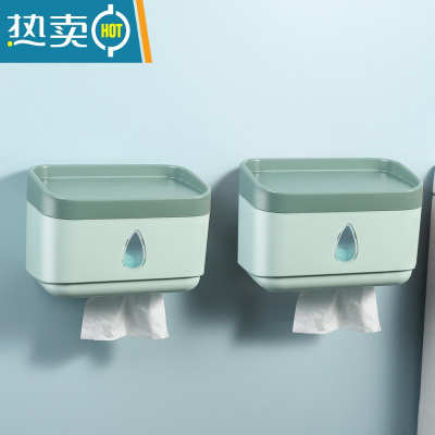 敬平卫生间纸巾盒免打孔厕所抽纸盒壁挂放厕纸的收纳置物架卫生纸挂架 2个装-橄榄绿