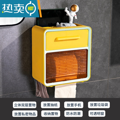 敬平卫生间纸巾盒壁挂式厕纸盒防水免打孔厕所卫生纸抽纸盒卷纸置物架 黄色双层[抽纸 卷纸通用]