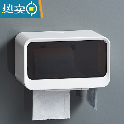 敬平卫生间纸巾盒厕所家用卷纸抽纸收纳免打孔防水洗手间壁挂式置物架 透明黑