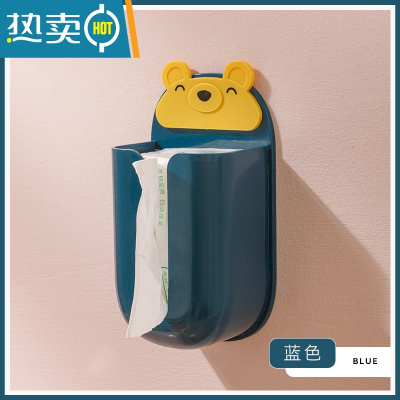 敬平卡通纸巾盒免打孔壁挂式家用抽纸盒可爱创意客厅厨房倒挂收纳盒子 蓝色小熊