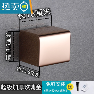 敬平不锈钢防水纸巾盒浴室抽纸盒厕所304不锈钢免打孔卫生间抽纸架 短款-加厚玫瑰金