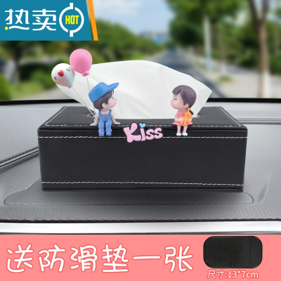 敬平汽车载纸巾盒车上扶手箱抽纸盒创意可爱车用餐巾纸车内饰用品挂式 [蓝色情侣+气球]送防滑垫+纸巾一包