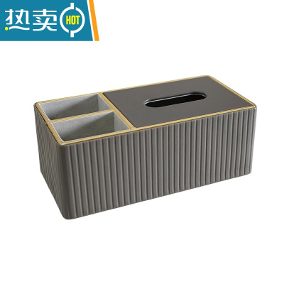 敬平北欧装饰纸巾盒轻奢茶几收纳盒套装客厅餐桌多功能收纳纸抽盒 灰意式条纹分格收纳盒