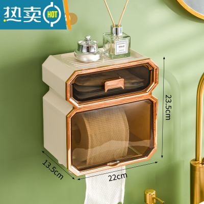 敬平卷纸盒卫生间家用挂壁式免打孔创意防水厕所纸巾置物架浴室卷纸筒 两只装-卡其色纸巾盒
