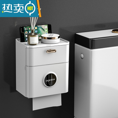 敬平厕所卫生纸置物架卫生间纸巾盒厕纸盒免打孔防水卷纸筒创意抽纸盒 优雅粉[尊贵款]