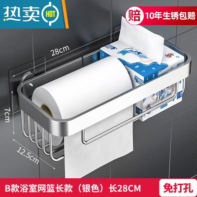 敬平免打孔厕所纸巾盒抽纸盒擦手纸盒置物架卫生间卷纸架纸巾架壁挂式 免打孔-B款长方形豪华款加长(优雅银)