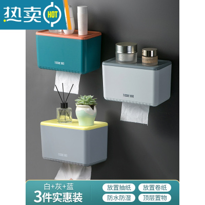 敬平卫生间厕所纸巾盒壁挂式抽纸盒纸巾架卷纸筒浴室防水免打孔手纸盒 象牙白+时尚灰+睿智蓝[3件豪华装]