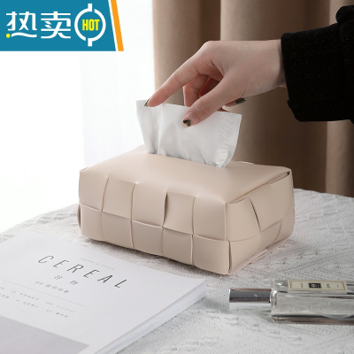 敬平monlightmria黑白棋盘格纸巾盒客厅轻奢餐桌抽纸盒bv编织纸盒 奶茶色