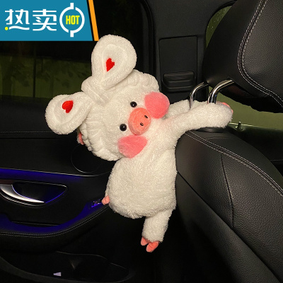 敬平车载纸巾盒挂式创意可爱个性扶手箱中控台网红汽车内抽纸盒车用女 白色爱心--网红猪猪(送纸巾1包)