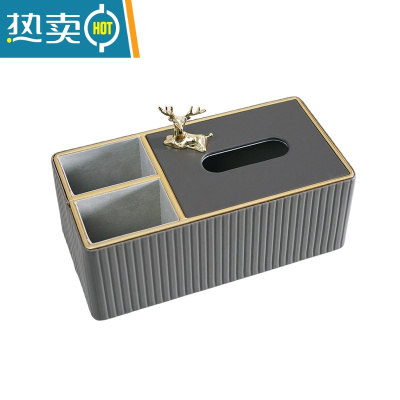 敬平轻奢纸巾盒套装家用装饰样板间客厅茶几餐桌多功能收纳抽纸盒 灰色意式条纹分格纸巾盒(小鹿)