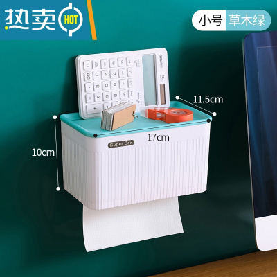 敬平简约卫生间纸巾盒免打孔厕所防水抽纸盒卷纸筒壁挂式卫生纸置物架 草木绿-小号