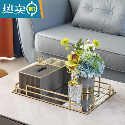 敬平纸巾盒抽纸盒家用客厅轻奢茶几纸抽盒餐桌皮革多功能遥控器收纳盒 套装二