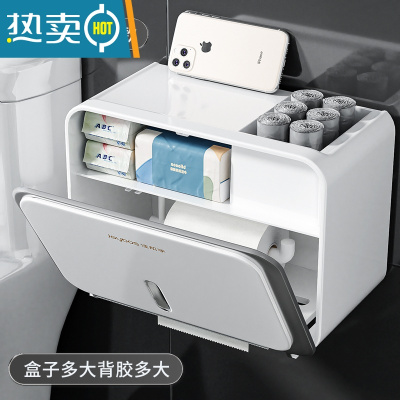 敬平卫生间纸巾盒厕所纸盒免打孔手机架浴室洗手间置物架收纳器壁挂 带杆加厚款亮光❤免打孔/打孔两用