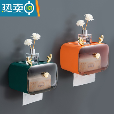 敬平卫生间纸巾盒壁挂式免打孔洗手间浴室放卷纸置物架防水厕所抽纸盒 活力橙+墨玉绿[抽纸卷纸通用]