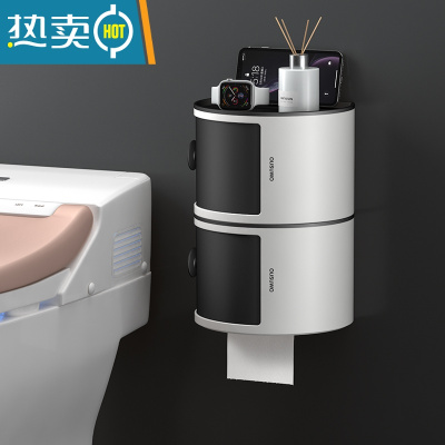 敬平厕所纸巾盒卫生间家用收纳卷纸架免打孔壁挂叠层置物架多功能防水 时尚黑[双层]