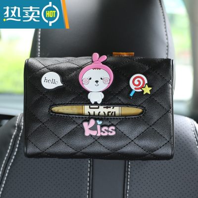 敬平创意车载纸巾盒卡通座椅车挂式车内抽纸巾扶手箱多功能车用装饰¥ 萌萌兔黑底-送纸巾★