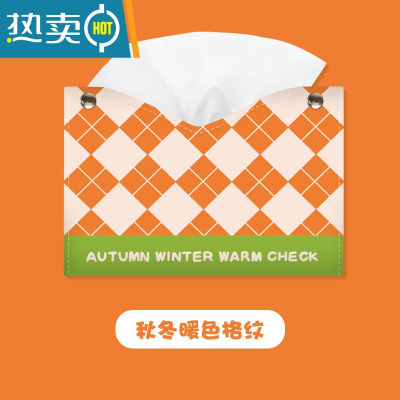 敬平郁金香花轻奢风车载抽纸收纳盒创意客厅纸巾套家居装饰纸抽盒 格子橙色-抽纸盒纸巾盒