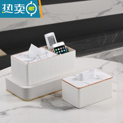 敬平纸巾盒客厅轻奢简约现代创意家用桌面ins网红餐厅餐巾抽纸盒 白色罗马柱套装(双格+纸巾盒小号)