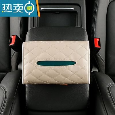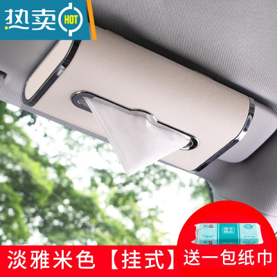 敬平汽车座椅靠背纸巾盒扶手箱绑带固定车内装饰挂式车载遮阳板抽纸盒 [米色]配送弹簧扣带