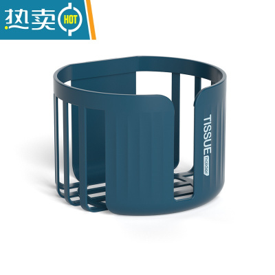 敬平卫生间纸巾盒厕所卷纸盒纸筒置物纸巾架壁挂式免打孔洗手间收纳盒 圆形款-蓝色