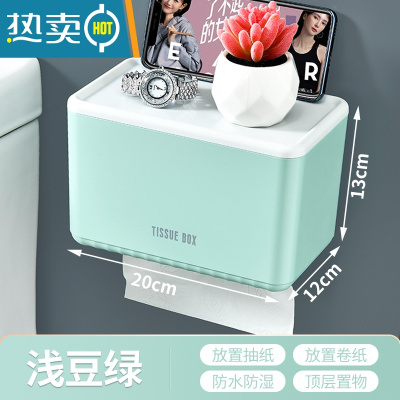 敬平免打孔创意防水纸巾架厕纸盒卫生间卷纸盒厕所卷纸架收纳简约壁挂 抹茶绿[特厚大号]纸巾盒