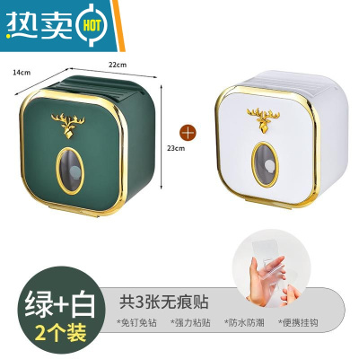 敬平卫生间纸巾盒防水免打孔厕纸盒浴室轻奢壁挂式置物架多功能抽纸盒 白色1个+绿色1个 共3片背胶