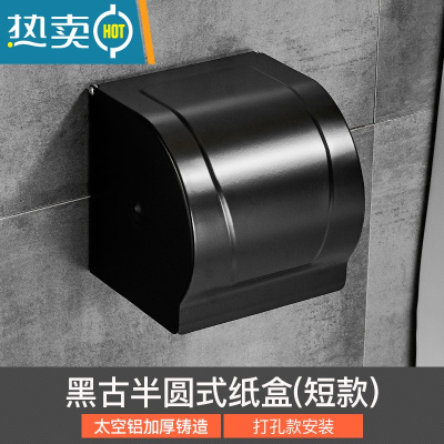 敬平太空铝厕纸架免打孔黑色手机纸巾架纸巾盒卫生间卫生纸盒手纸卷架 半圆式纸盒短款打孔款