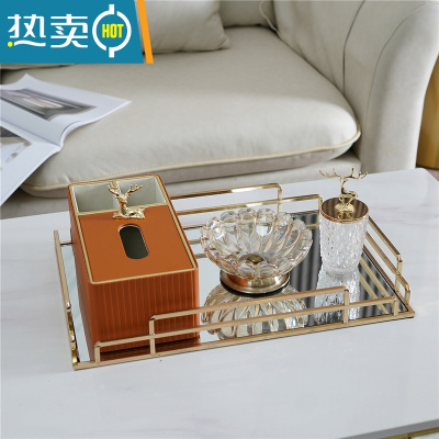 敬平北欧装饰纸巾盒轻奢茶几收纳盒套装客厅餐桌多功能收纳纸抽盒 橙色意式收纳盒套装+ (牙签罐+烟灰缸)