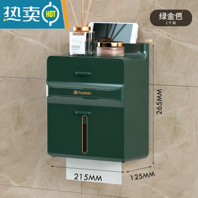 敬平厕所抽纸盒免打孔壁挂式卫生间防水纸巾盒卫生纸厕纸置物盒卷纸架 绿金色