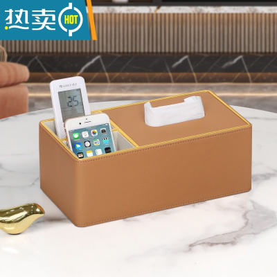 敬平纸巾盒轻奢客厅茶几餐厅收纳抽纸盒创意卧室桌面多功能遥控器盒子 霞光橙镀金款[库存不足售完下架]