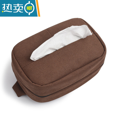 敬平车载纸巾盒车内餐巾抽纸盒汽车扶手箱绑带车用抽纸包创意椅背挂式 超纤翻毛皮[咖啡棕]- 送抽纸