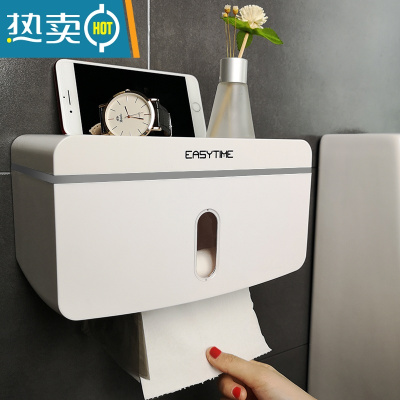 敬平厕所卫生纸置物架卫生间纸巾盒厕纸盒免打孔防水卷纸筒创意抽纸盒 时尚灰[尊贵款]