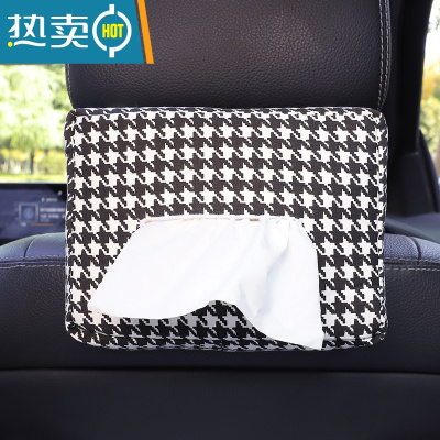 敬平车载纸巾盒抽汽车内用挂式创意可爱卡通装饰用品扶手箱车上纸巾包 经典千鸟格纸巾盒