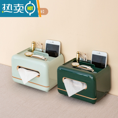 敬平纸巾盒抽纸盒家用客厅创意轻奢简约现代茶几多功能遥控器收纳 两件套[薄荷绿+森林绿]