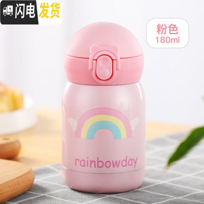 三维工匠保温杯女便携男孩女童小学生防摔儿童水杯子可爱小孩小容量茶杯 粉色180送杯刷