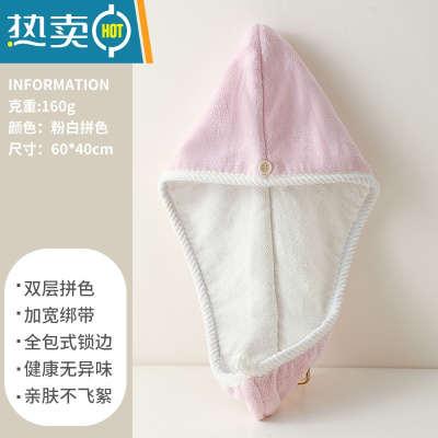 敬平干发帽吸水加厚速干女童洗头包头发毛巾可爱儿童擦头器浴帽 ❤粉白拼色[160g双层加厚]