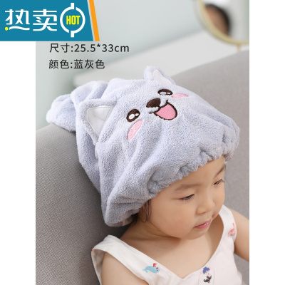 敬平儿童干发帽女童吸水可爱浴帽速干发毛巾2021新款宝宝包洗头巾 套头款-柯基 蓝灰色:(建议3岁以上)