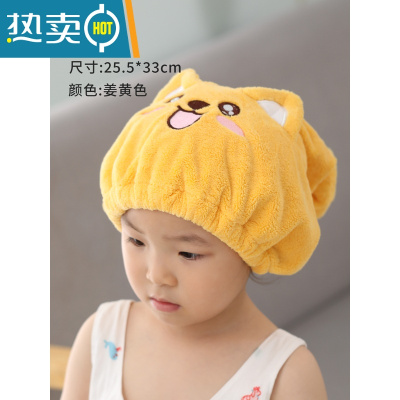 敬平幼儿干发帽浴帽可爱女宝擦头儿童女童吸水加厚公主婴幼儿女孩小孩 儿童-姜黄色圆耳朵款