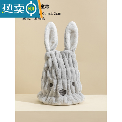 敬平儿童干发帽女童吸水速干宝宝洗头包头毛巾浴帽干发巾2021新款 兔宝宝-[浅灰色]3-14岁均可用