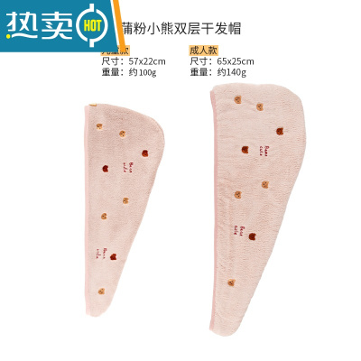敬平儿童干发帽女亲子婴儿干发包头巾女童小孩洗头浴帽吸水超可爱 [双层加厚儿童款]粉色(收藏加购优先发货)