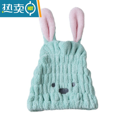 敬平儿童宝宝干发帽可爱兔耳韩国女童吸水速干帽成人包头巾浴帽干发巾 萌兔//绿色1个/特厚绒