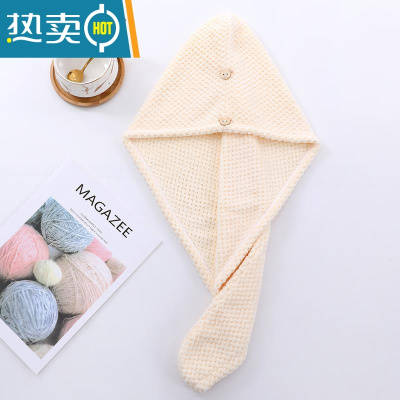 敬平[买2送1]吸水速干头巾女用加厚菠萝格长发干发帽包头浴帽 米黄色