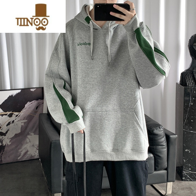 YANXU胖胖哥连帽卫衣男士港风拼色大码休闲上衣潮牌宽松胖子外套