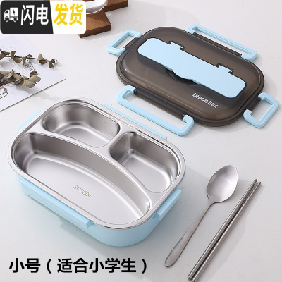 三维工匠 304不锈钢分格保温饭盒上班族便当盒便携分隔微波炉加热餐盒 蓝色小号[3格+餐具]适合儿童小学生