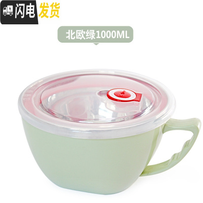 三维工匠304不锈钢泡面碗保温餐盒上班族学生便携宿舍碗筷套装小饭盒 北欧绿1000(不含赠品)