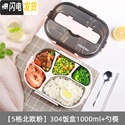 三维工匠上班族饭盒健身减脂学生1人带饭分格型便携304不锈钢带盖保温餐盒 [5格北欧粉]304饭盒1000+勺筷