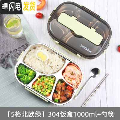 三维工匠上班族饭盒健身减脂学生1人带饭分格型便携304不锈钢带盖保温餐盒 [5格北欧绿]304饭盒1000+勺筷