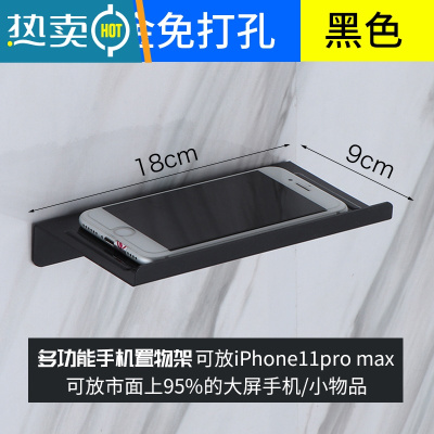 敬平卫生间厕所手机架壁挂墙上公共场所放手机架隔断板置物架纸巾托盘 厚铝黑手机架(免打孔)浴室置物架