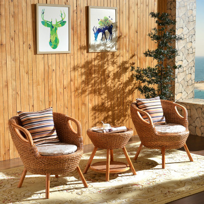 质凡 藤椅三件套 阳台桌椅 户外休闲茶桌椅 小藤椅子 2椅+1几