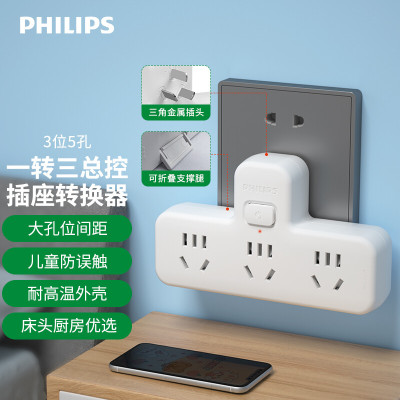 飞利浦(PHILIPS)转换插头/品字形一转三插座/无线转换插座/电源转换器 3位分控插座3030W/93